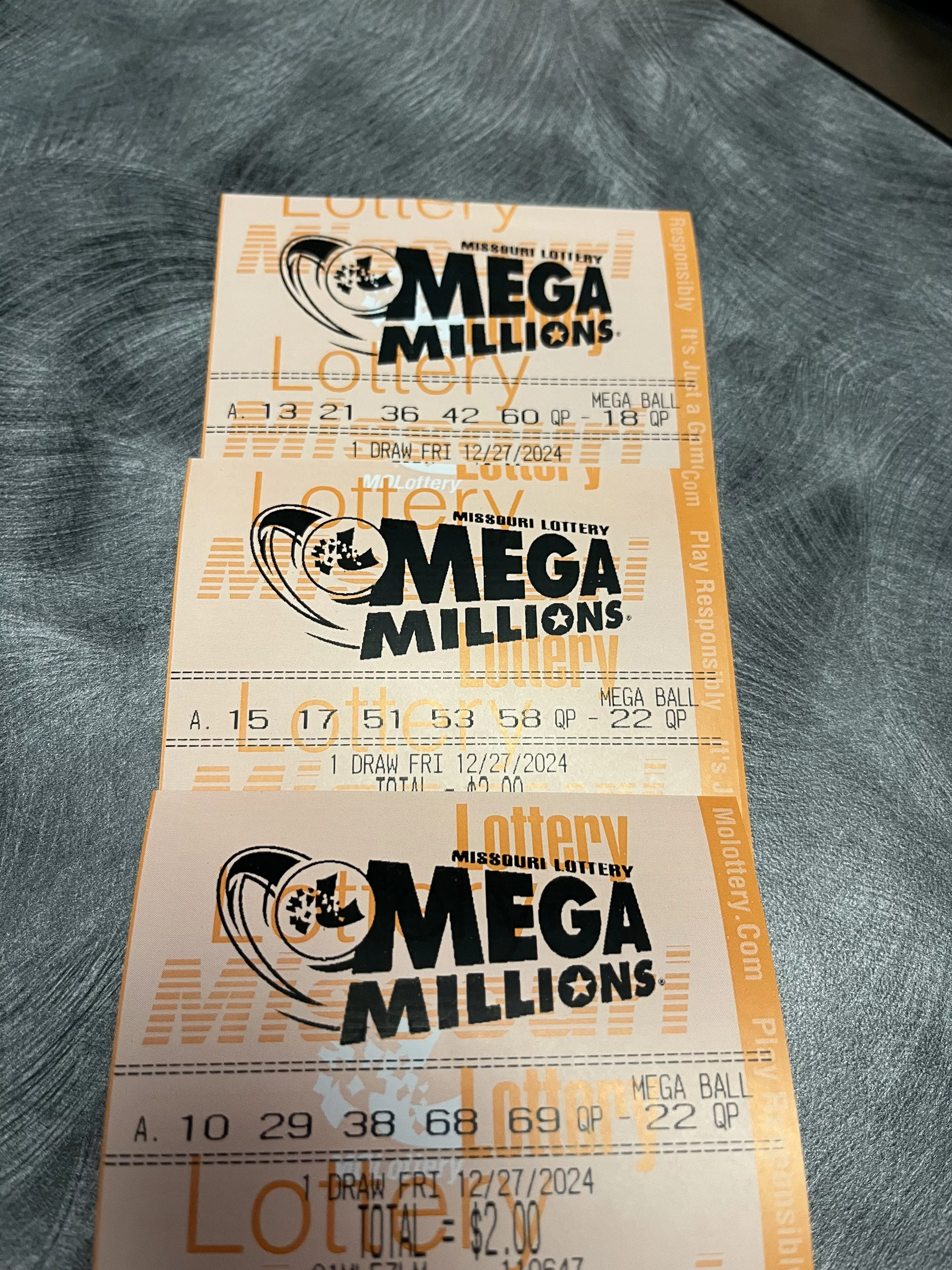 We have 3 numbers for Mega Millions we want to share with you. Enter below to be a part of the pool as we share the numbers and hope of winning an estimated $1.15 Billion dollars! Find the rules HERE (by entering this pool you have read, agreed to, and completely understand all of the rules of this pool). Deadline to enter is 9:27 pm central time Friday December 27th, 2024.